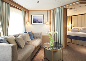 ![]() | CLASSIC SUITES Relax in 400 to 530 spacious square feet. Your living area offers beautiful views from the forward-facing window and French doors onto your private veranda. Two spacious closets give you plenty of room to unpack. |