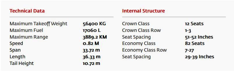 The Embraer E190-E2 is the first member of the next-generation E-Jet E2 family, built to deliver exceptional performance, environmental efficiency, and passenger comfort. Its advanced design enables airlines to explore new routes while maintaining sustainable profitability and operational flexibility.Offering a smart balance of capacity and range, the E190-E2 is ideal for expanding networks and reaching underserved destinations. With a maximum range of up to 5,278 kilometers (2,850 nautical miles) and a maximum takeoff weight of 56,400 kg, it delivers high performance across regional and medium-haul routes.In a two -class configuration, the E190-E2 accommodates up to 94 passengers and cruises at a speed of Mach 0.82—ensuring a quiet, efficient, and comfortable flight experience every time.